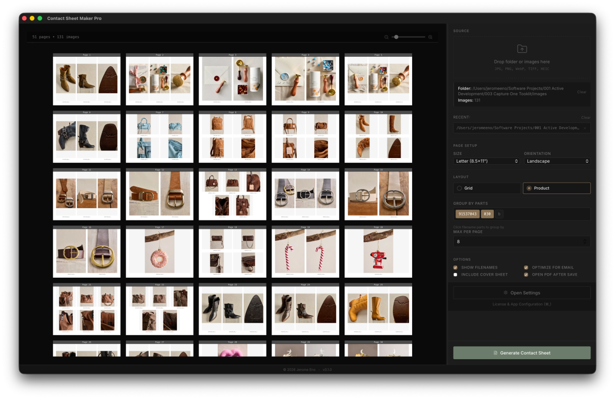 From commercial shoots to e-commerce catalogs—professionals trust ATELI3R:CONTACT SHEET MAKER PRO.